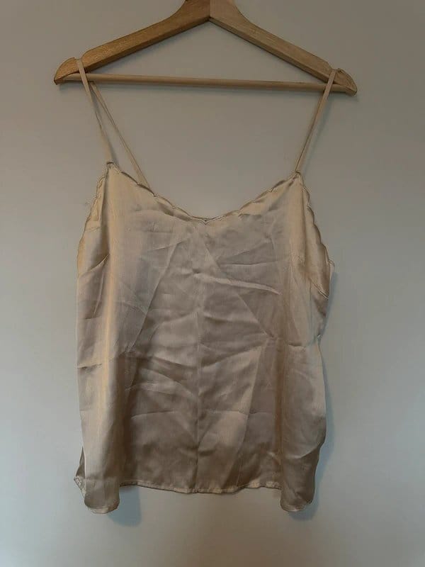 The Topshop Champagne Satin Cami Top is available in sizes M.