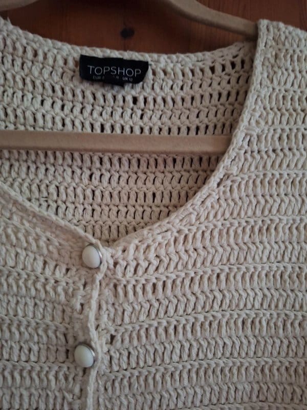 The Topshop Cream Crochet Cardigan is available in sizes M.