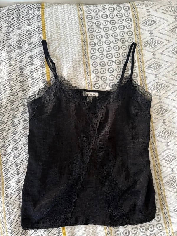 This black lace vest top by Topshop features an adjustable strap design and a silky feel. Perfect for a casual chic look.