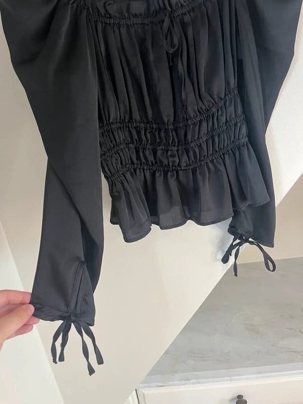 The Topshop Black Ruched Silk Tie Long Sleeve Blouse is ideal for casual, formal.