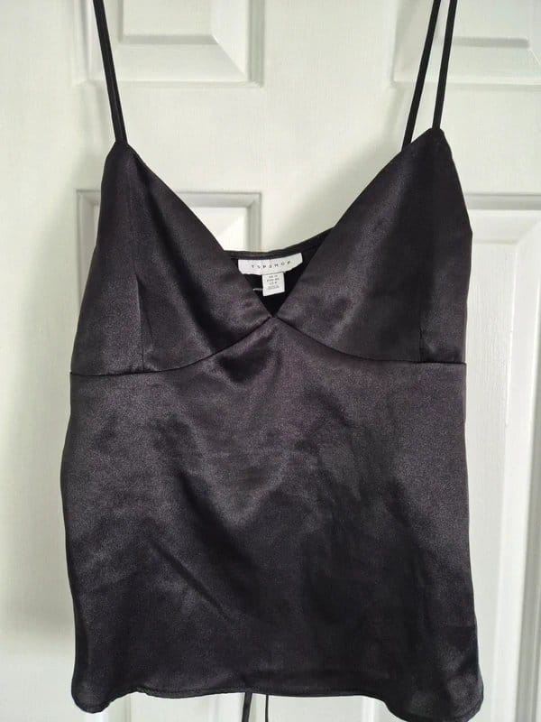TopshopTopshop Black Satin Strappy Cami Top Size 12