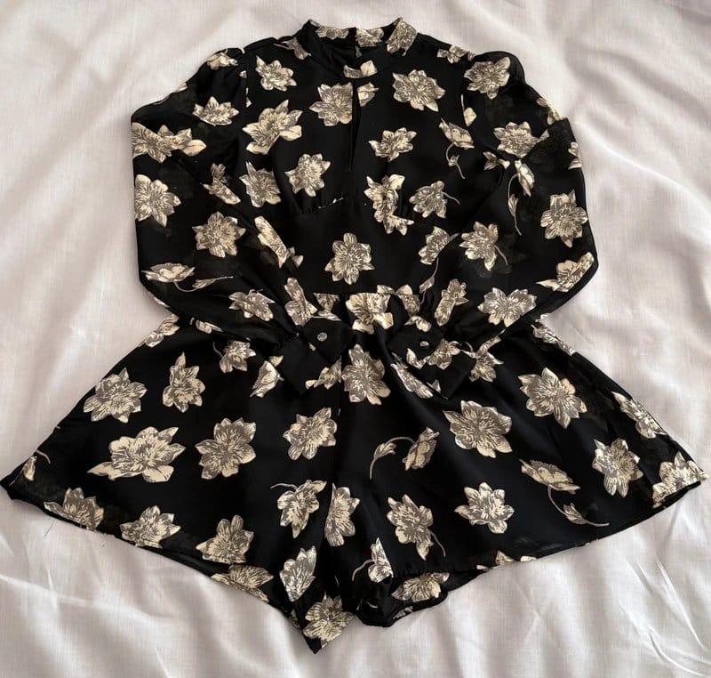 The Topshop Black/White Floral Cut Out Playsuit Size 8 is made from chiffon.