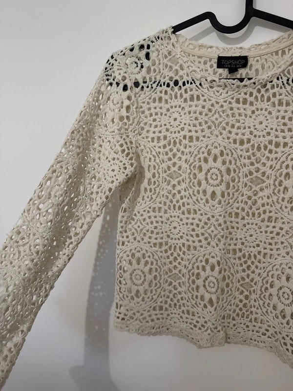 The Topshop Cream Crochet Style Top is available in sizes S.
