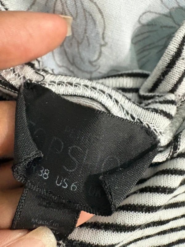 View Vinted's returns policyThis Topshop crop petite striped tee is in great condition despite being fairly worn. It is a petite size 10 but fits more like a size 8. The tee features a classic black and white striped pattern and a cropped hemline.