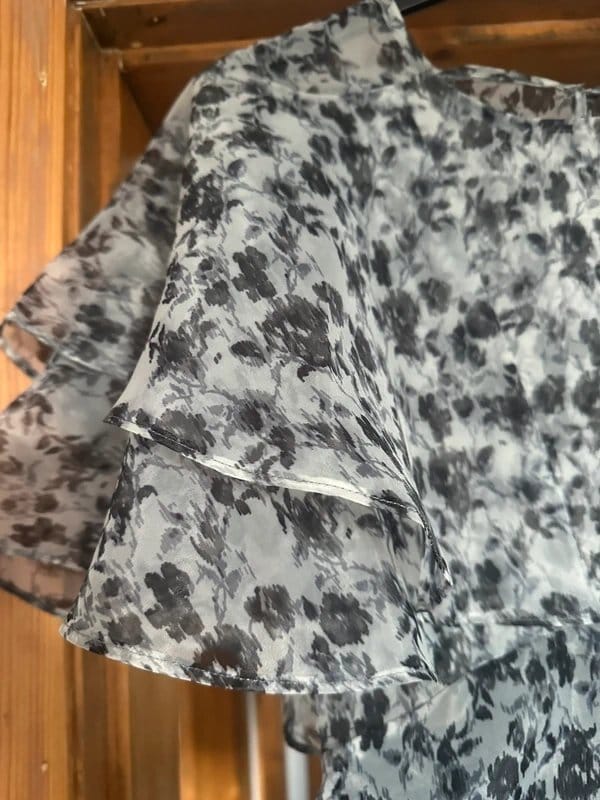 View Vinted's returns policyCharming mini dress from Topshop featuring a floral print in shades of grey and black. Made from a chiffon-like fabric, this dress offers a light and airy feel. Ideal for casual outings or special occasions.