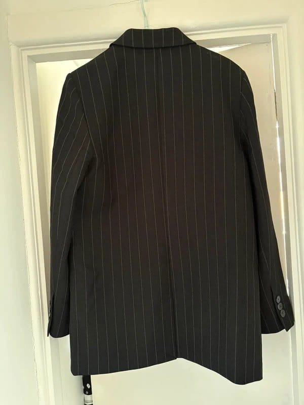 “Pair with a white shirt and dark trousers for a sharp business look, or wear with a dress for a stylish evening ensemble.”