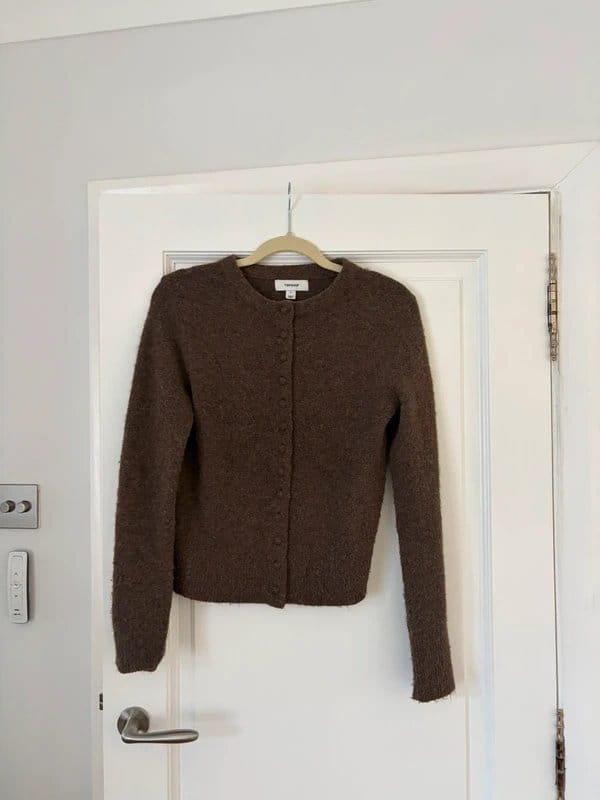 The Topshop Brown Knit Button-Up Jumper is available in sizes S.