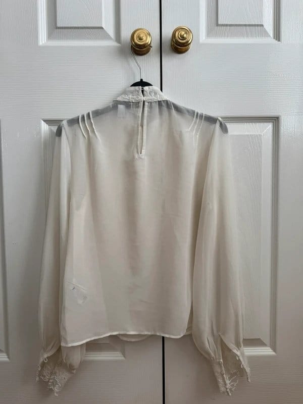 The Topshop Cream Lace Blouse in Size 8 is made from silk, lace.