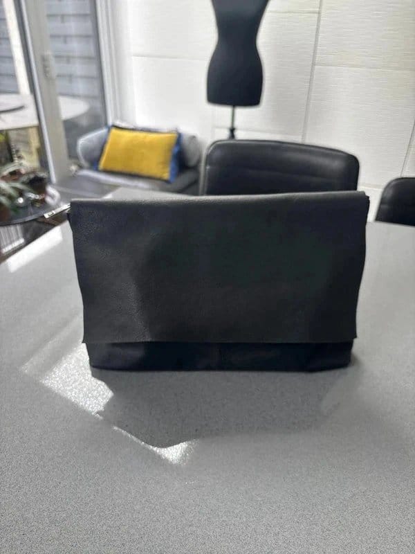 View Vinted's returns policyStylish black leather clutch bag from Topshop. Features a chrome zip fastening, internal pocket, and folds completely flat for easy packing. Perfect for a night out or special occasion.