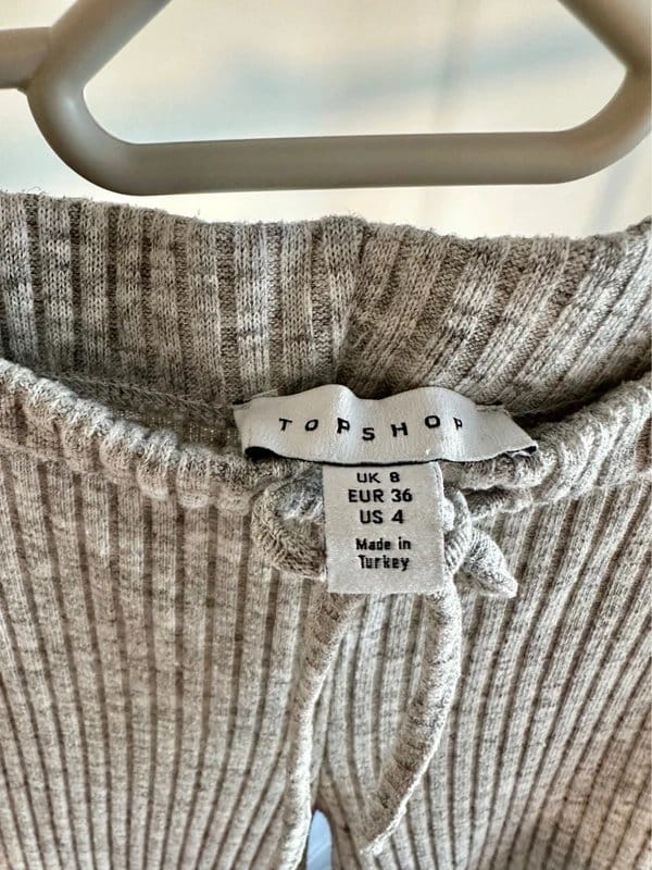 The Topshop Light Gray Ribbed Knit Trousers is available in sizes S.