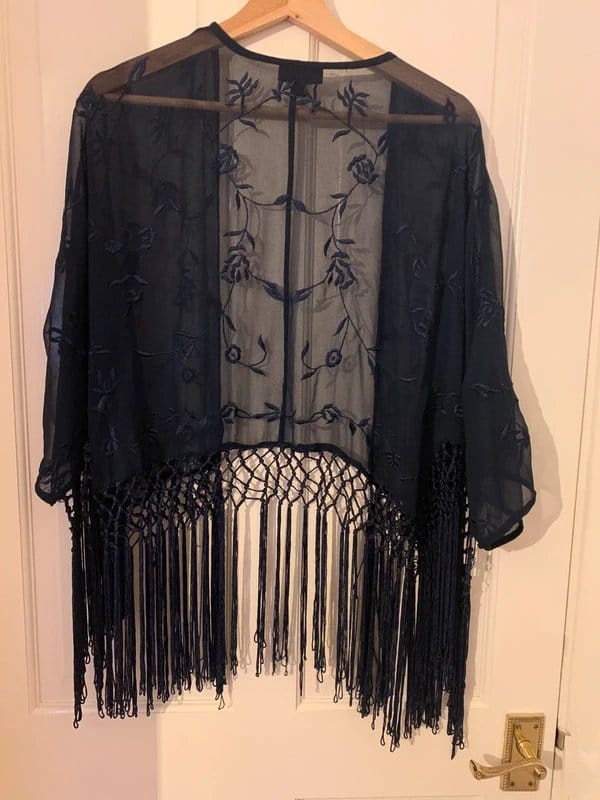 “Pair with black leather ankle boots and a silver clutch for an evening look, or wear with white jeans and a white tee for a casual daytime ensemble.”