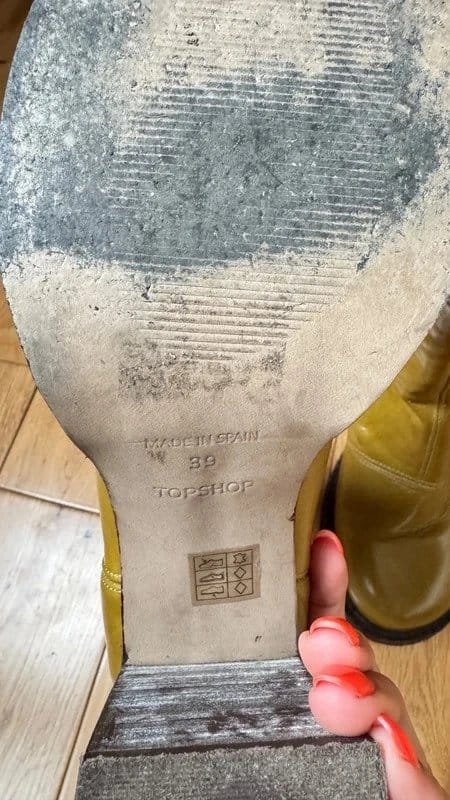 The Topshop Olive Green Leather Square Toe Boots is available in sizes S.