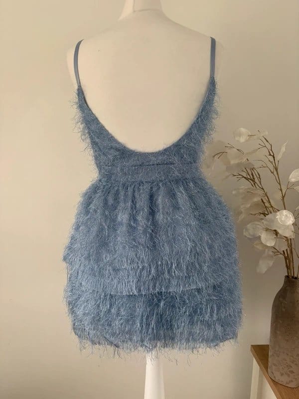 The Topshop Light Blue Feather Mini Dress Size 8 is available in sizes S.