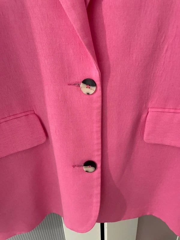 The Topshop Pink Blazer Size 10 is made from cotton.