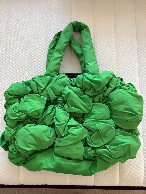 This Topshop ruched Tony bag in green features a bold ruched design and a sleek silhouette. Perfect for adding a statement touch to any outfit.