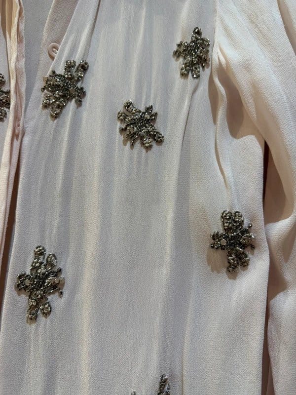 The Topshop Rose Sequin-Embellished Button-Up Shirt is available in sizes S.