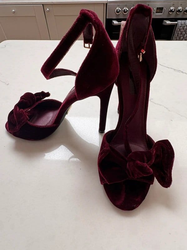 The Topshop Burgundy Velvet Bow Heels is ideal for evening, party, date-night.