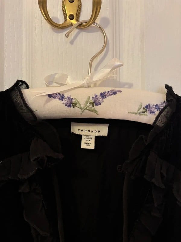 See all outfit ideasStylish black velvet mini dress from Topshop featuring a ruffled neckline and embroidered floral details. Perfect for evening events or casual outings.