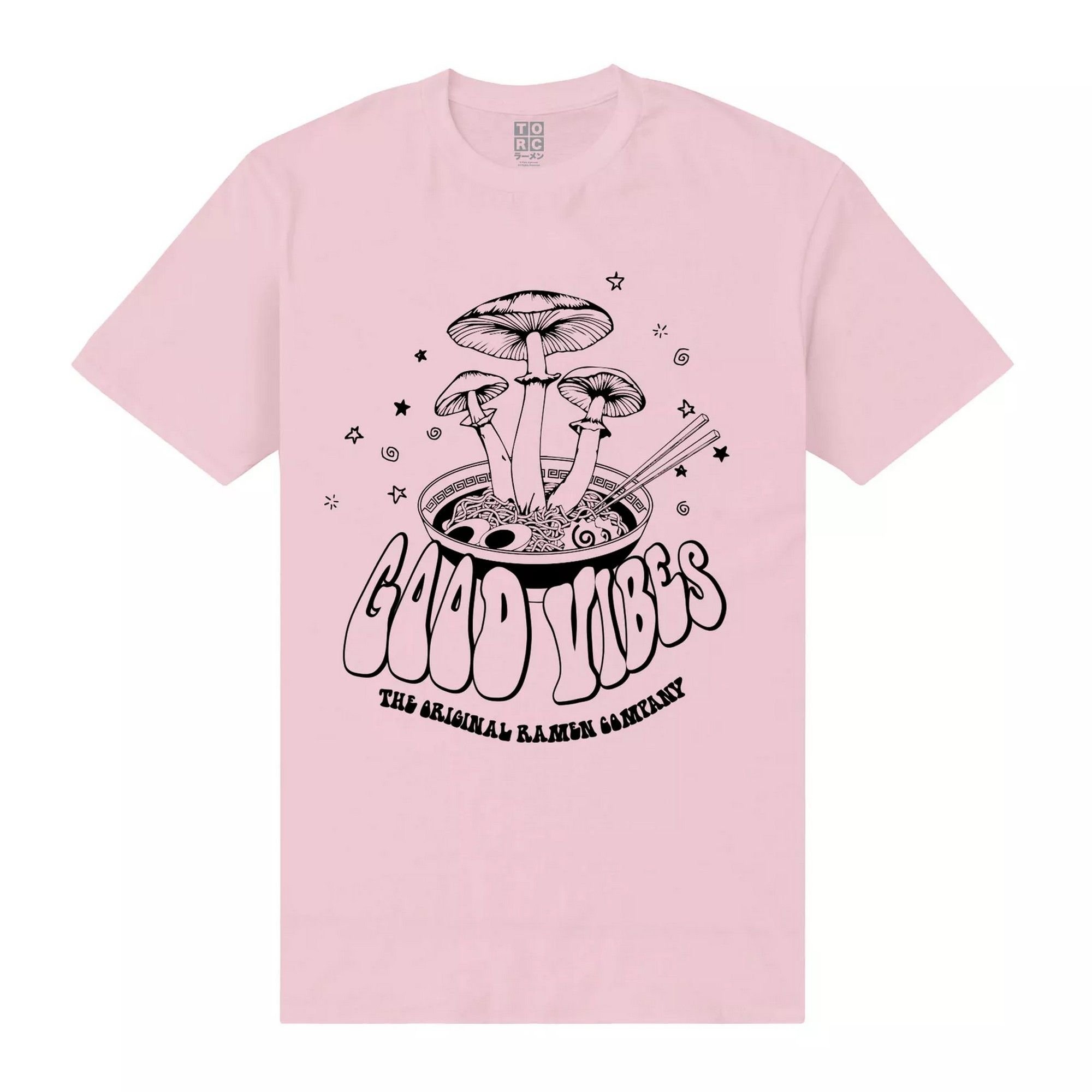 Trendy pink T-shirt with a quirky mushroom print. Made from 100% combed ringspun cotton for a soft feel. Features a crew neckline and short sleeves. Perfect for a casual look.