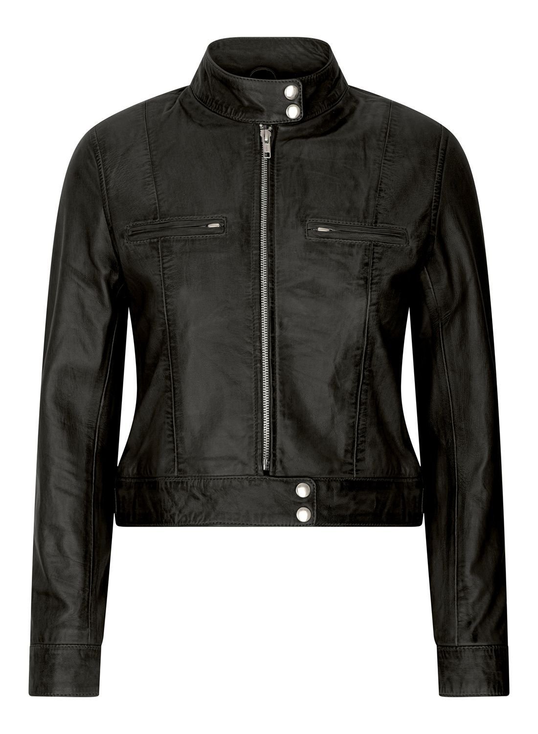 The TruClothing Black Leather Biker Jacket for Women is made from leather.