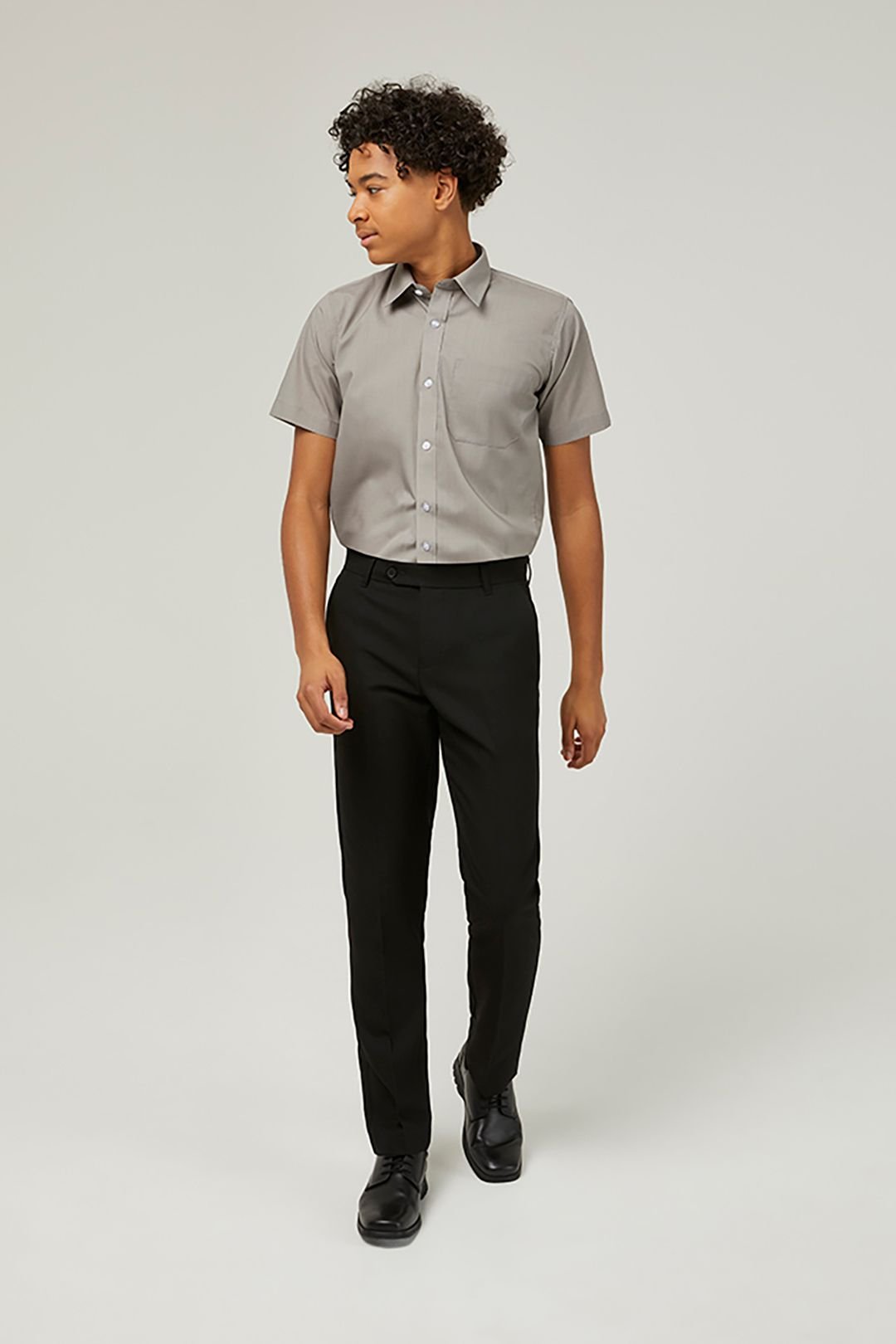 Stylish grey non-iron school shirts from TRUTEX. Perfect for everyday wear with a no-iron requirement for convenience. Comes in a twin pack for easy rotation.
