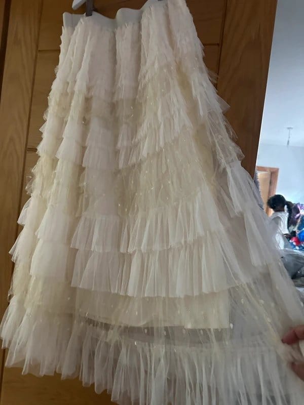 The Tulle Cream Ruffle Boho Festival Skirt UK 12-14 is ideal for festival, special occasion, evening.