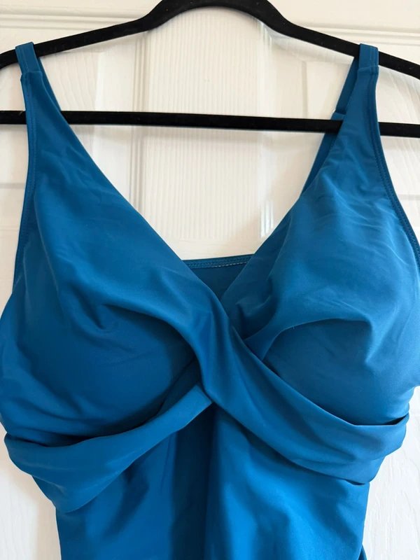 The TUOPUDA Peacock Blue Ruched One-Piece Swimsuit is available in sizes XL.