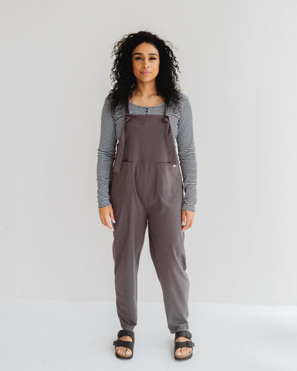 Stylish charcoal cotton dungarees with a relaxed fit, perfect for casual wear. Featuring adjustable shoulder straps and multiple pockets for practicality.