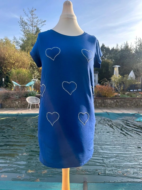 Beautiful Twin Set Simona Barbieri blue dress/top with signature heart detailing 💙. Soft, stretchy fabric makes it super comfortable and flattering. Perfect for casual summer outfits.