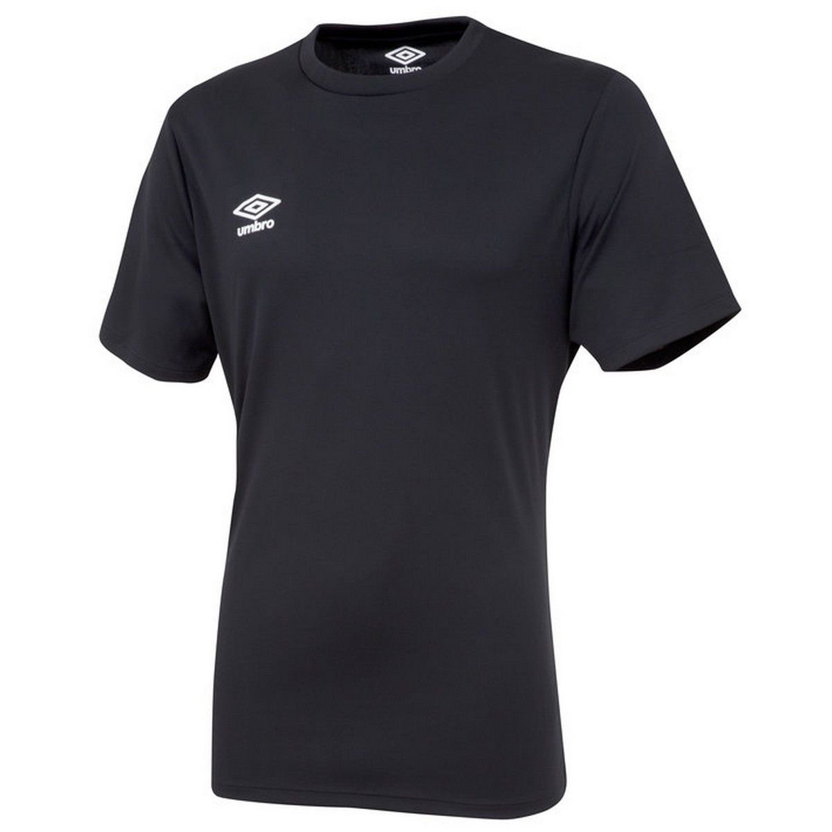 This black short-sleeved jersey by Umbro is crafted from 100% polyester micro eyelet fabric. It features a crew neckline with a ribbed finish and a stacked logo on the left chest. Ideal for casual wear or sports activities.