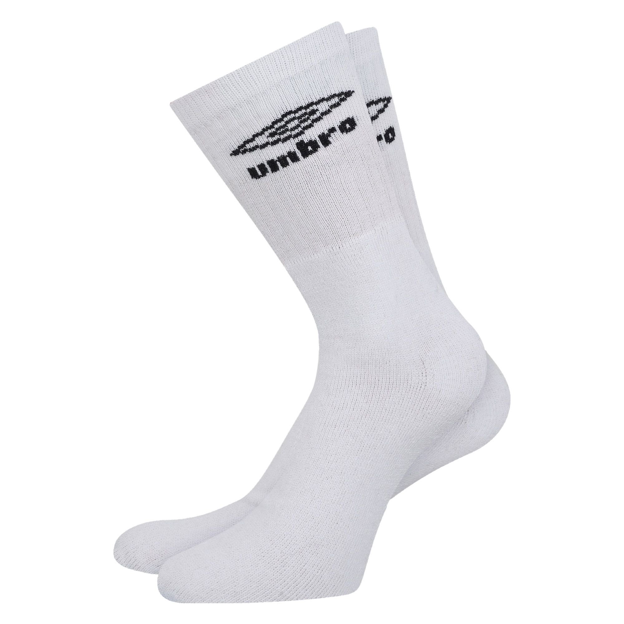 The Umbro Men's Logo Crew Socks (Pack of 3) in White is available in sizes 6-11.
