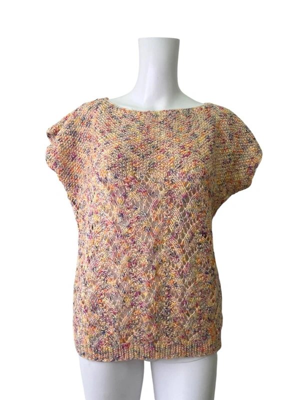 This hand-knitted top features a crochet design in a delightful multicolour pattern. Perfect for a casual look, it is made from a stretchy fabric.