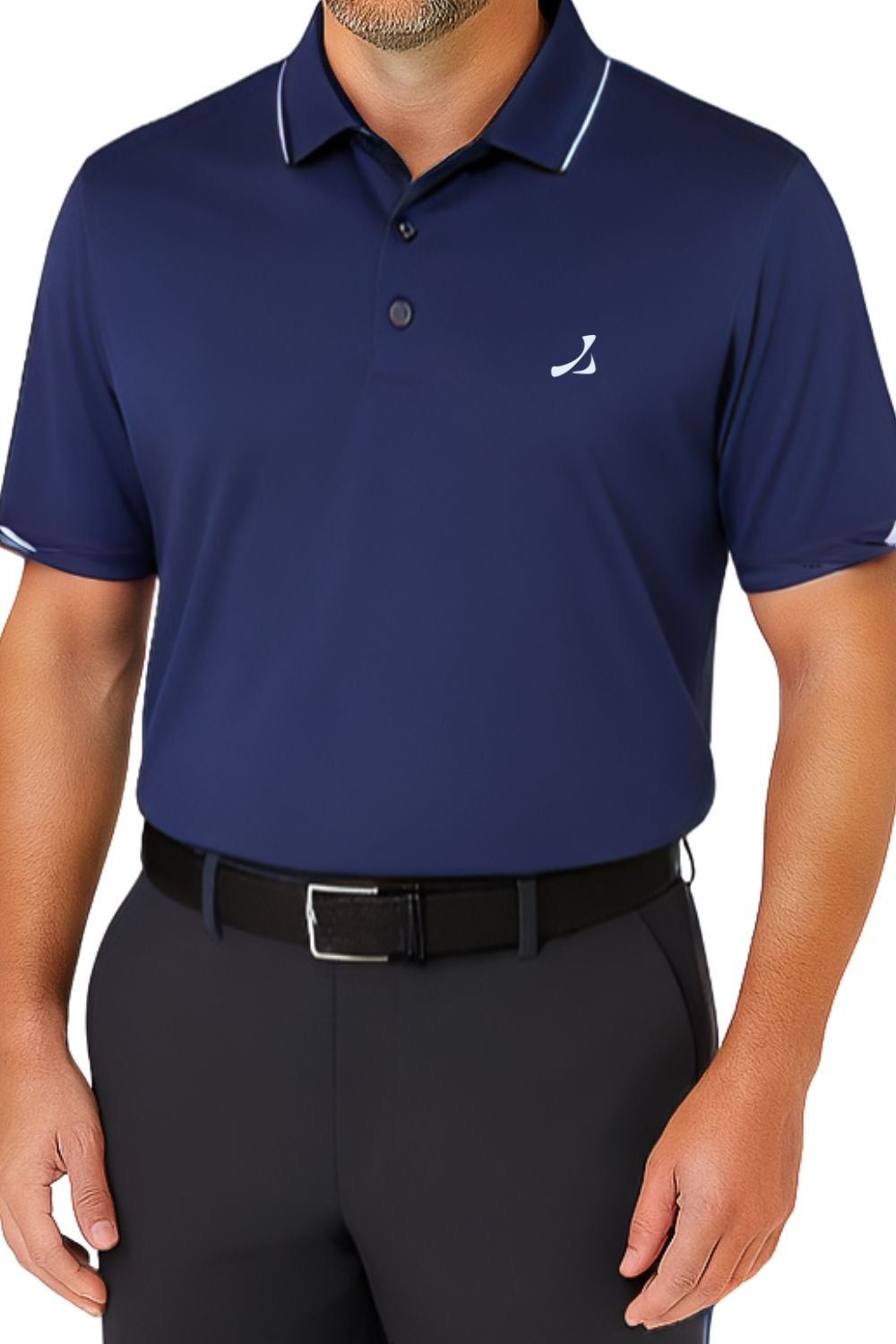 Stylish Navy polo shirt crafted from 100% Polyester with 4-way stretch technology. Designed for ultimate comfort and flexibility, perfect for golf or casual wear.