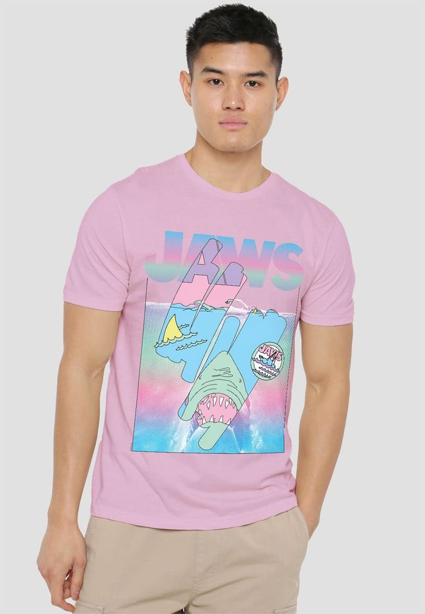 Genuine Jaws merchandise with original design. Made from high quality material, these products are true to size and designed to last. The light pink colour adds a unique touch to this graphic tee.