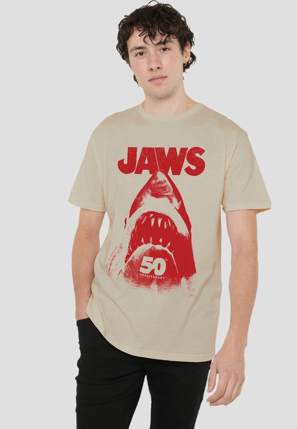 The Universal Men's Jaws Red Shark Poster T-Shirt, Light Sand is ideal for casual, everyday.