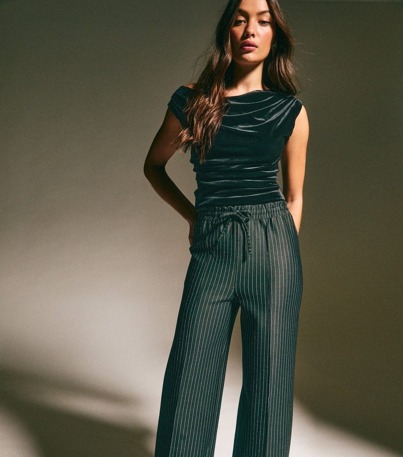 The New Look Black Sparkly Pinstripe Wide Leg Trousers is ideal for evening, night out, party.