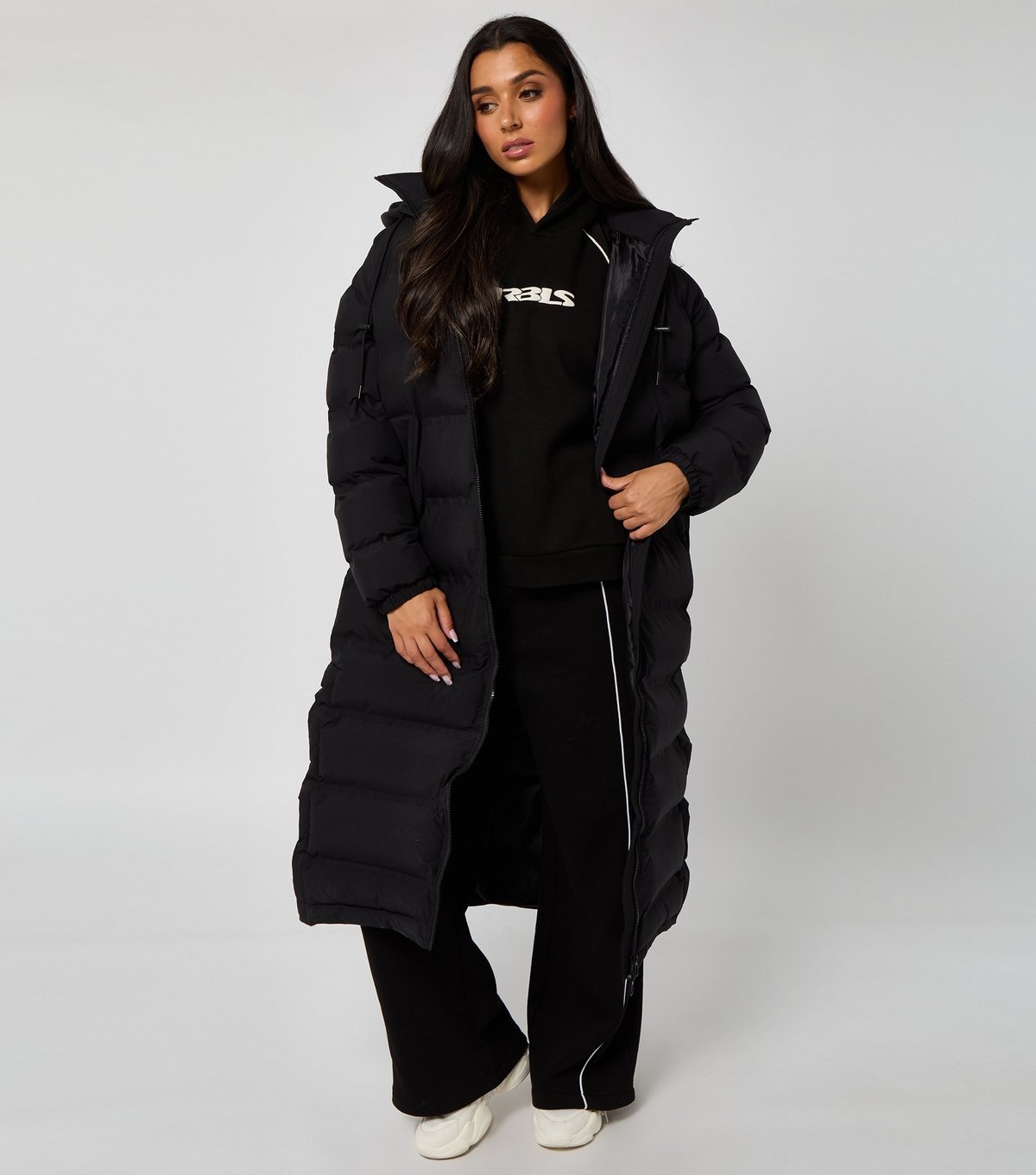 Urban Bliss' black maxi puffer coat is perfect for chilly days. The long, padded design ensures warmth, making it a wise choice to be prepared when the cold kicks in.