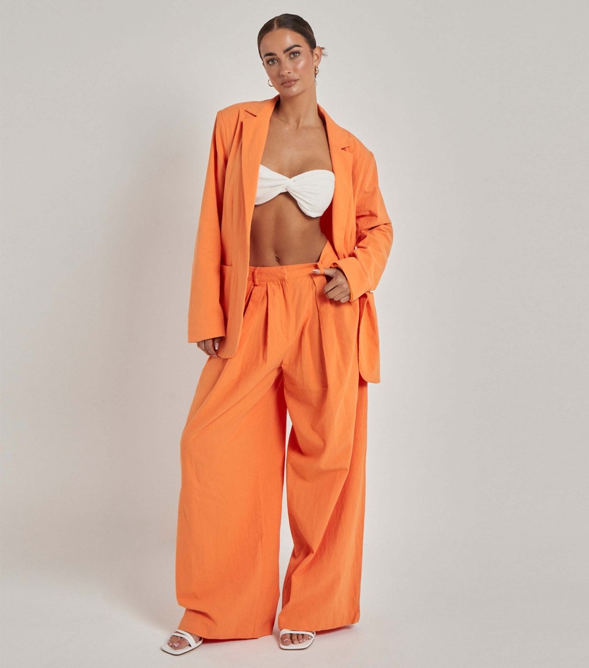 The Urban Bliss Bright Orange Cotton Oversized Blazer is available in sizes 8.