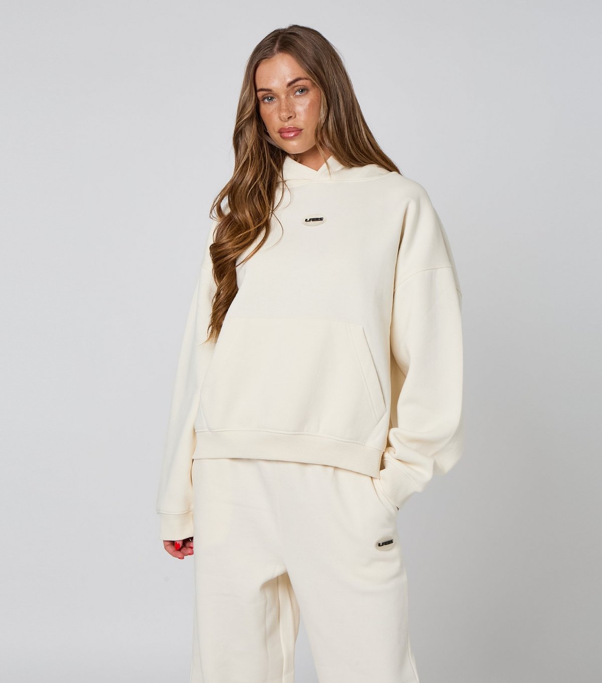 The Urban Bliss Cream Oversized Hoodie is available in sizes 10, 12, 14, 16, 8.