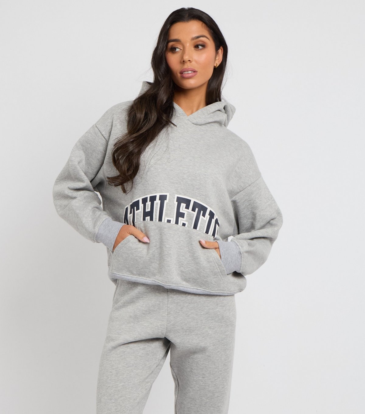 The Urban Bliss Grey Athletics Print Hoodie is made from jersey.