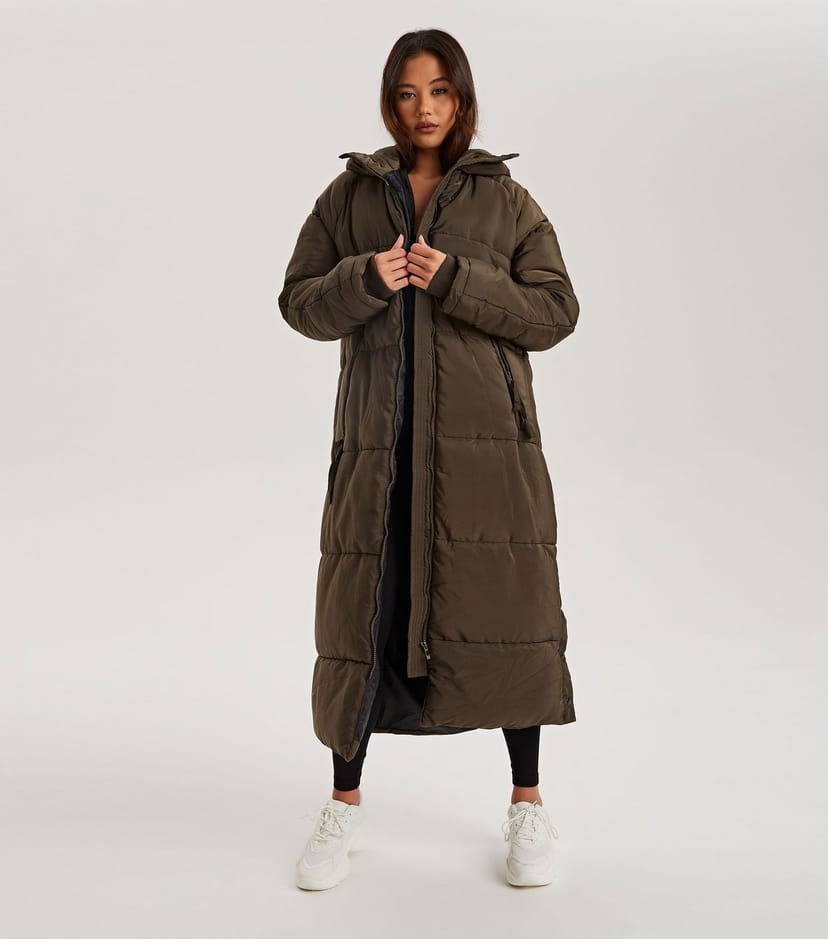 Stay snug in style with this dark khaki puffer jacket. Perfect for chilly days, its long length and cosy fit keep you warm and effortlessly fashionable.
