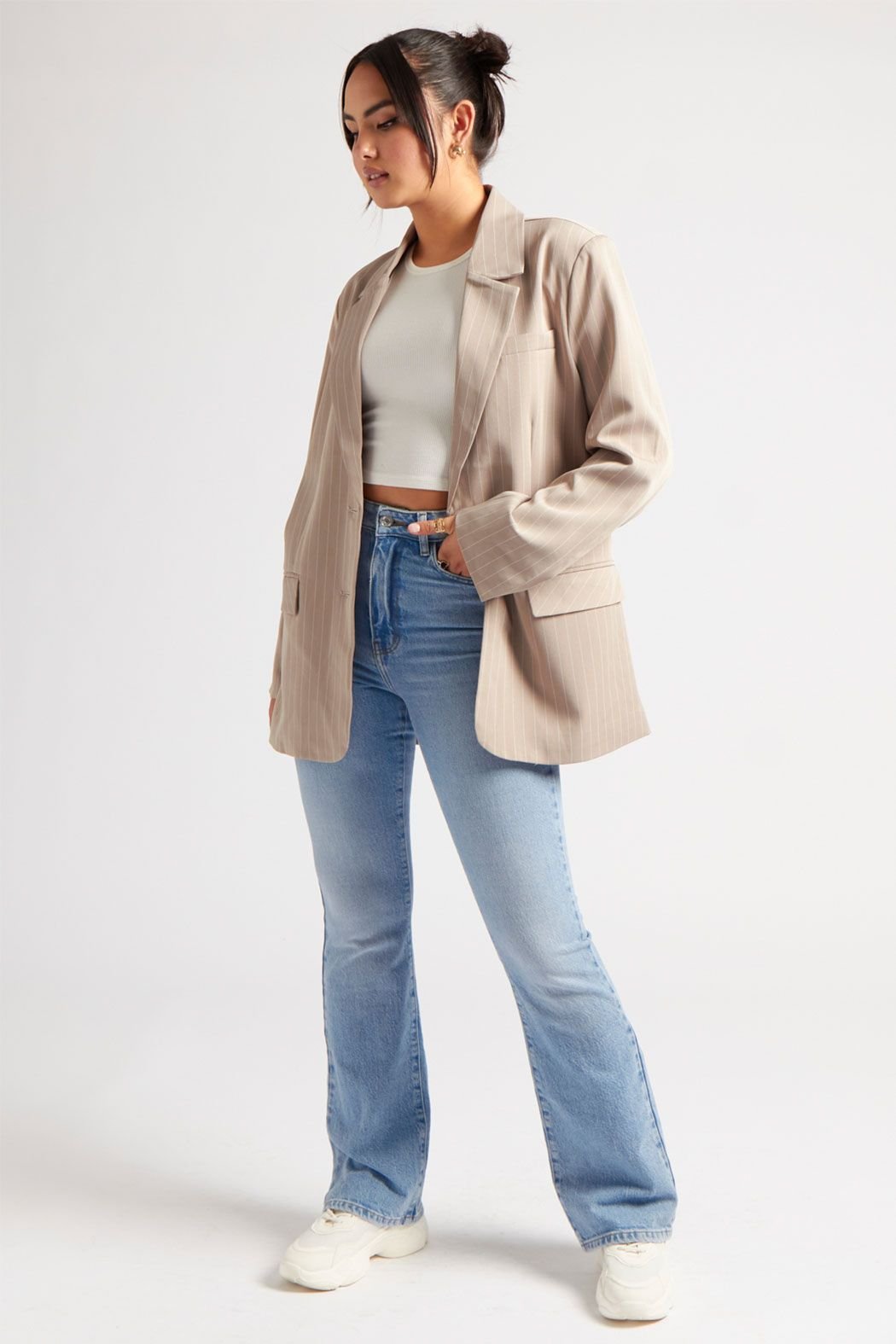 The Urban Bliss Light Brown Oversized Blazer is available in sizes 10, 14.