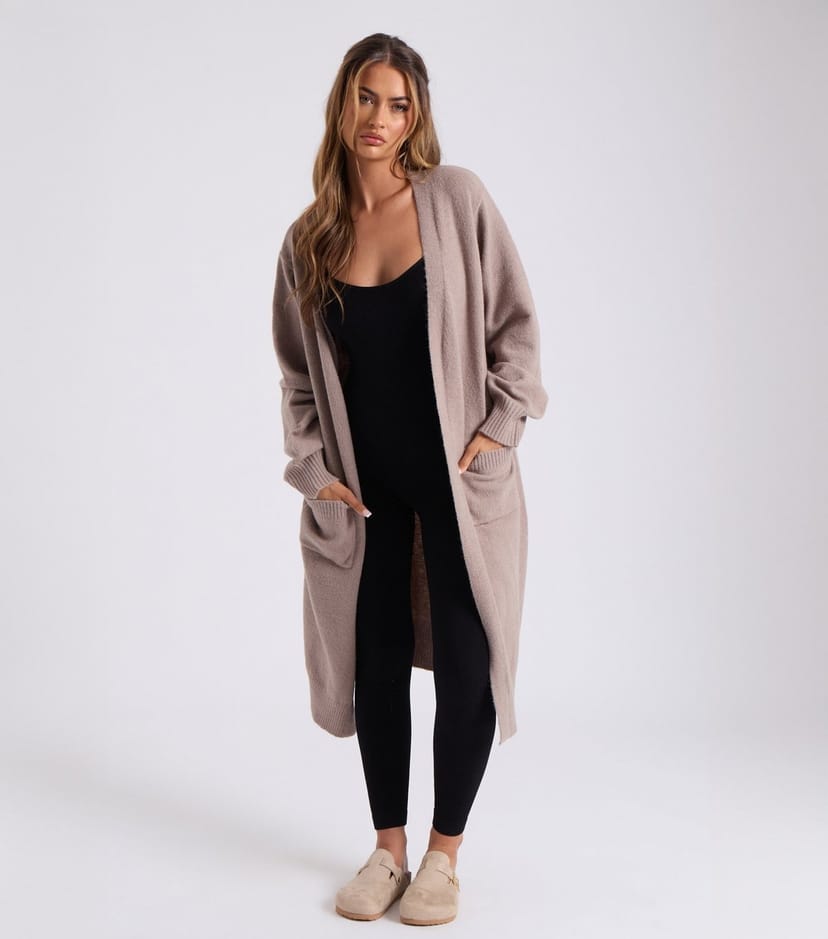 The Urban Bliss Light Brown Longline Cardigan is made from wool, polyester.