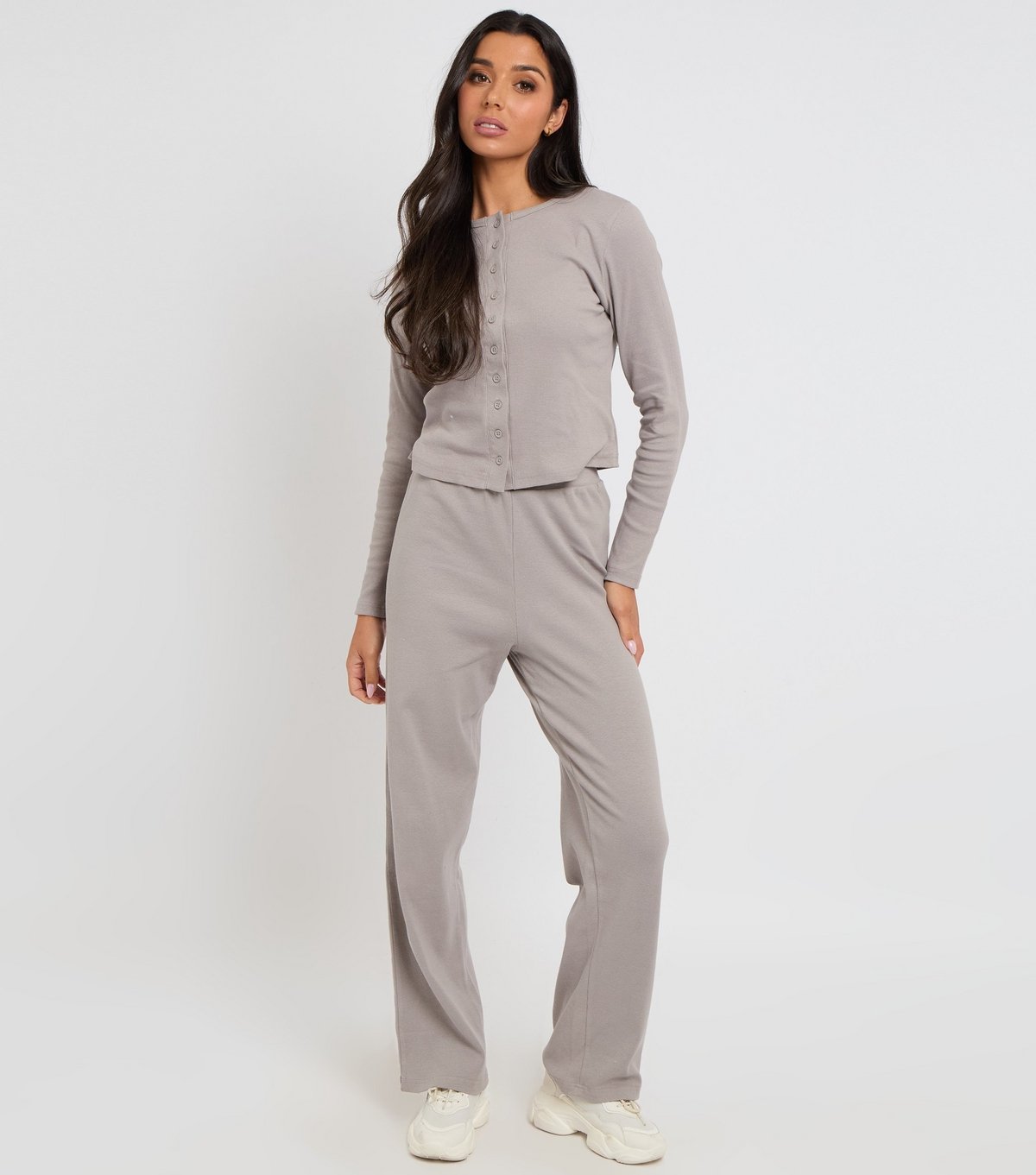 Comfortable and stylish, these light grey ribbed trousers by Urban Bliss feature a relaxed fit and a full length. The wide-leg profile adds a modern touch, perfect for casual wear.