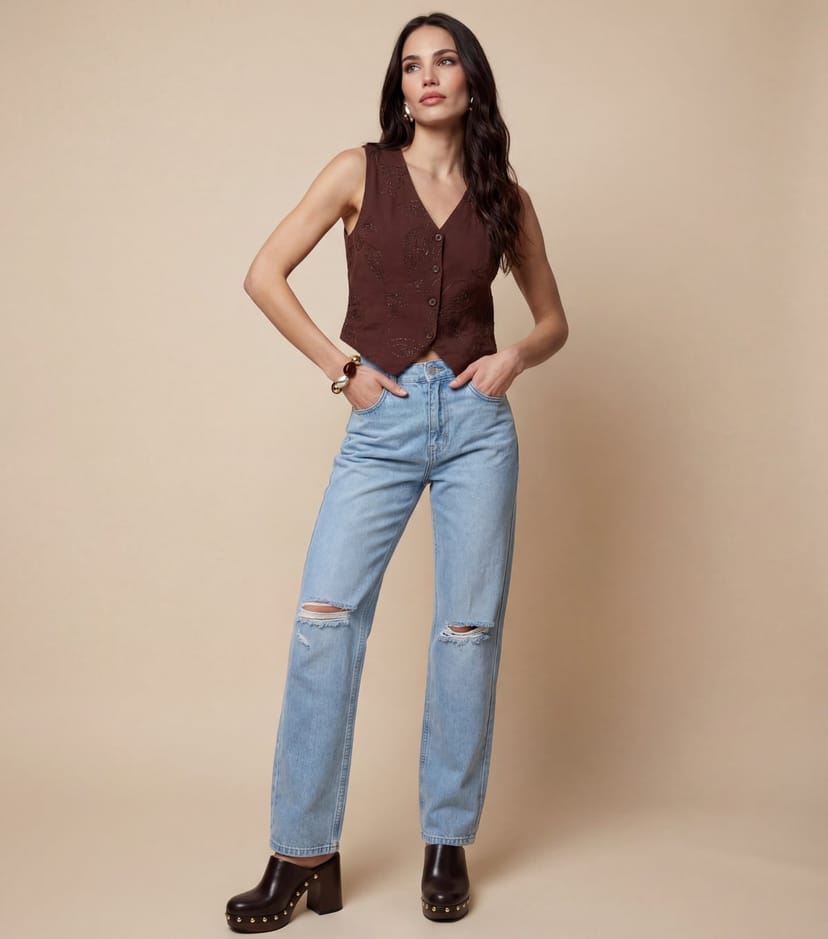 The Urban Bliss Brown Embellished Waistcoat is ideal for casual, everyday.