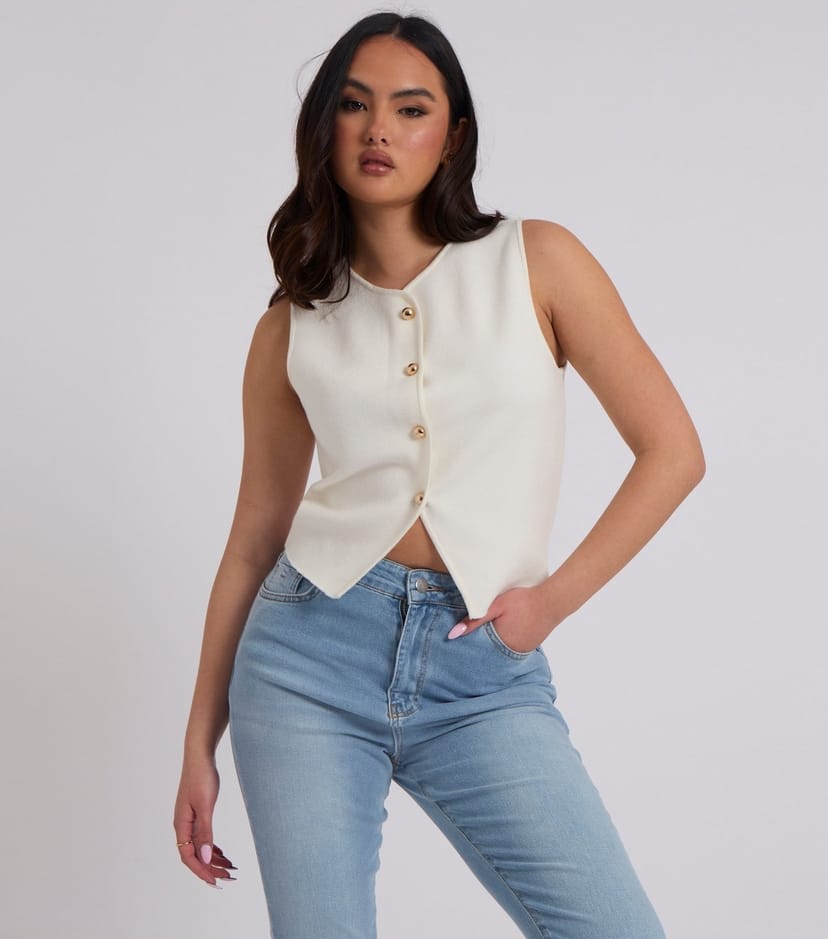 The Urban Bliss White Woven Button-Through Vest is ideal for casual, everyday, outings.