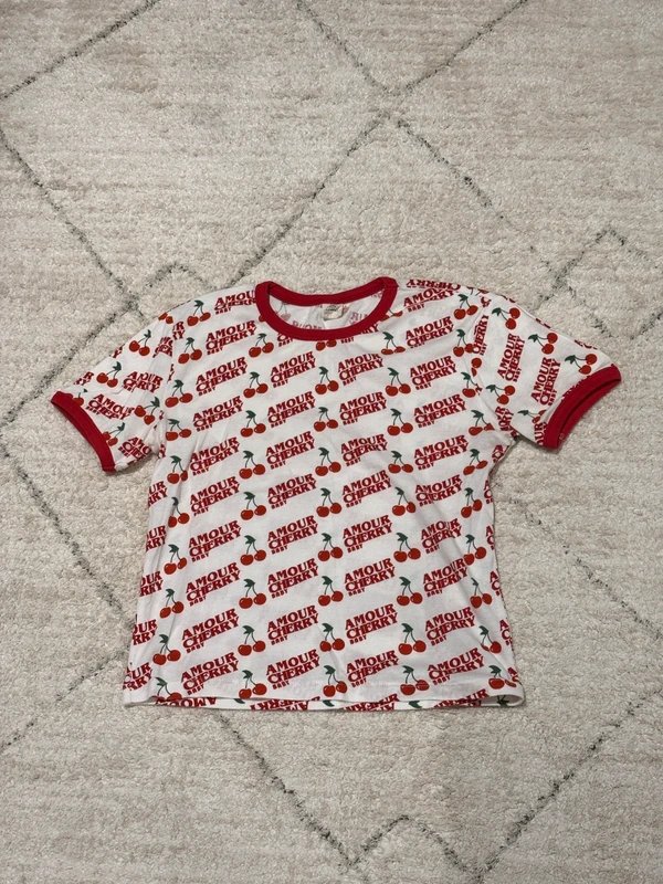 Urban Outfitters Cherry Amour Baby Tee — a playful and trendy tee for casual wear. Featuring a vibrant red and white cherry print, this short-sleeve tee is perfect for a casual day out or a relaxed evening. Crafted from a soft and comfortable fabric, it offers a relaxed fit and a crew neckline for a comfortable and stylish look.