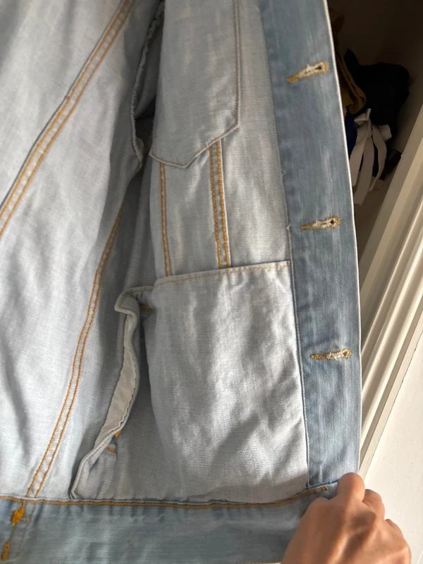 Light Blue Denim Sherpa Collar Jacket — the perfect blend of vintage style and modern comfort. Designed with light blue denim, shearling collar, button closure, oversized fit, distressed details. Features a timeless American vintage look for a versatile style.