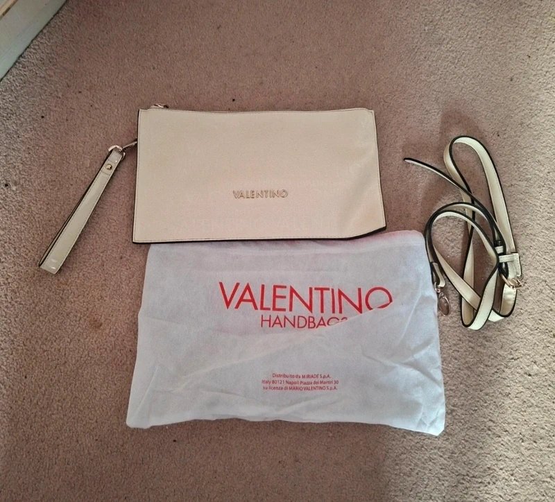 The Valentino Vintage Cream Clutch in Off-White is ideal for evening, party.