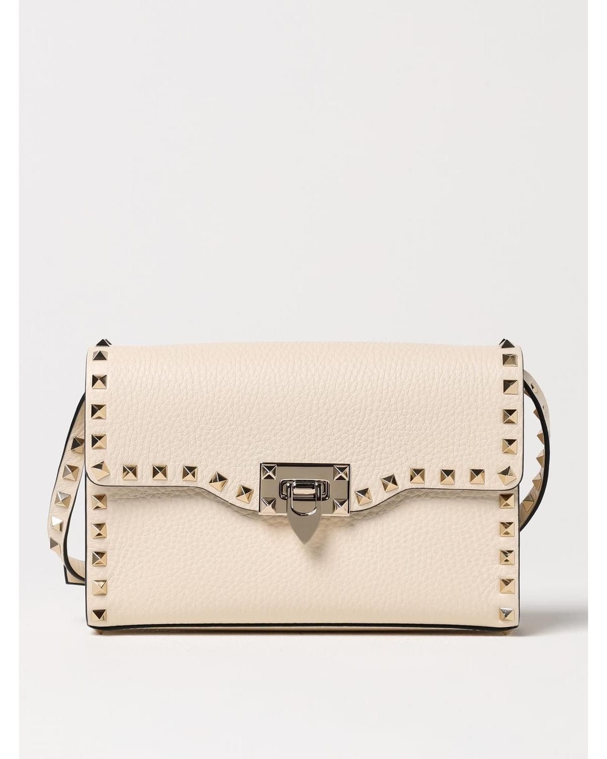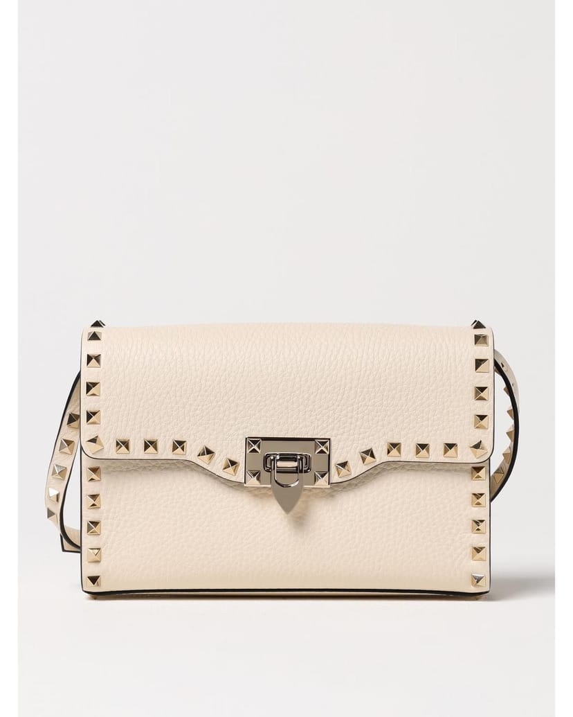 The Valentino Garavani Cream Rockstud Small Flap Bag is ideal for evening, date-night, party.